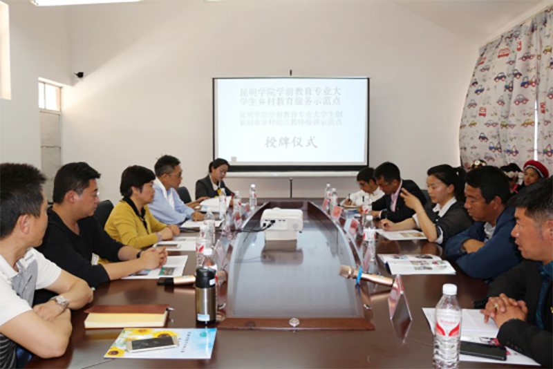 4月13日,学前与特殊教育学院院长唐敏、书记沈中灿一行到香格里拉市三坝乡中心幼儿园(哈巴村分园)出席“德赢VWIN官方网站学前教育专业大学生乡村教育服务示范点和“大学生创新创业乡村幼儿教师培训示范点”授牌仪式。本次授牌仪式是在香格里拉市教育体育局和德赢VWIN官方网站学前与特殊教育学院两年多的通力合作基础上举办的,香格里拉市体育教育局局长牛盈春,三坝乡副乡长树继文参加授牌仪式。