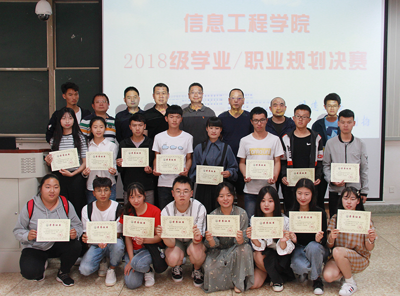 419,为了帮助大一新生正确认识自己,做好学业(职业)规划,树立正确的成才观和发展观。信息工程学院在博识楼1003楼举行2018级大学生学业(职业)规划大赛。学院党总支书记陶军、院长刘渝妍,各教研室主任,全体辅导员,2018级班主任以及18级全体同学近250余人参加活动。