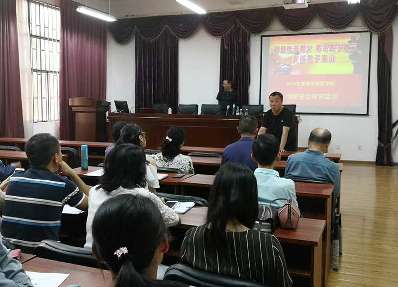 为不断提高医学院教职工对消防安全工作的认识,进一步掌握消防安全知识以及消防灭火器的使用方法。59日,医学院在-2103会议室举行了一次别开生动的消防知识培训。此次培训得到学校保卫处消防科大力支持,特别邀请昆明市消防火知识宣传服务中心王辉老师到校开展《消防安全知识和消防技能》专题讲座。医学院全体实验指导教师、教职工30余人参加培训。