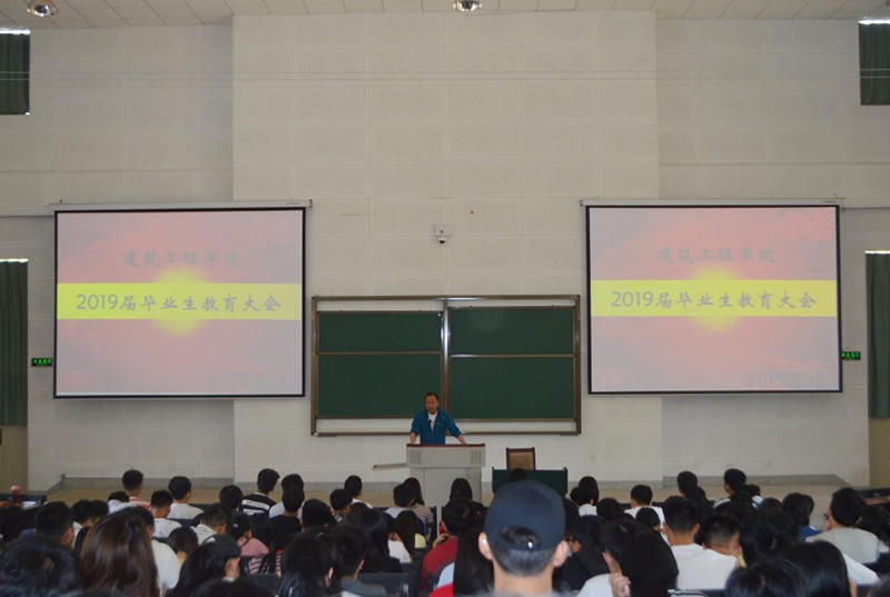 513日,建筑工程学院在博雅楼3101教室召开2019届毕业生教育大会。学院党总支书记徐从发、院长莫南明、杨光华副院长以及院系其他领导,2019届年级辅导员、各班班主任、全体毕业生300余人参加了本次大会。