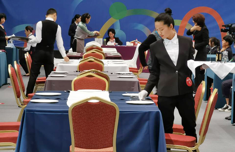 5月16日-19日, 2019年“鼎盛诺蓝杯”第十一届全国旅游院校服务技能(饭店服务)大赛在杭州举办,德赢官网旅游学院陈渟渟、李子钰、章粤东、赵薇薇四名参赛选手分别荣获本科院校组客房服务、鸡尾酒调制、餐厅服务(中餐宴会摆台)、餐厅服务(西餐宴会摆台)三等奖。