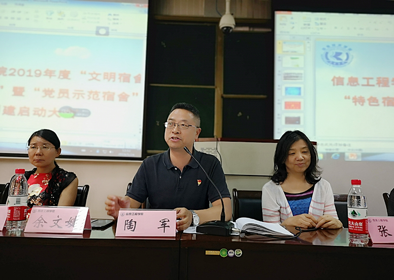 5月24日,为了营造积极向上、健康文明的宿舍氛围,促进院风、学风、舍风的建设,信息工程学院在博识楼1003召开了2019年度“文明宿舍”“特色宿舍”暨“党员示范宿舍”创建动员大会。党总支书记陶军,全体班主任以及信息工程学院学生代表参加大会。