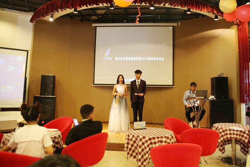 开幕式上,毕业生身着盛装按班级依次走上红毯并在背景墙签名留念。走秀结束后,熊绍宏书记代表学院寄语全体毕业生,勉励同学们走出校园、走向社会后做到不负时代,不负青春。教师代表马少春表达了对同学们的美好祝愿。优秀毕业生代表孙静茹发言,深情表达了对学校对老师的感谢和眷恋。酒会上,伴随着“2019毕业季”微电影的循环播放,毕业生们享受着学院精心准备的冷餐,沉醉在大学四年的美好回忆中。