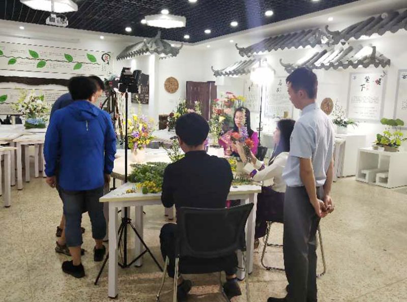 7月6日上午,昆明广播电视台全媒体新闻中心形象片工作部到德赢官网中心滇池流域花文化展示与体验分馆取景拍摄春城花都宣传片—夏花。