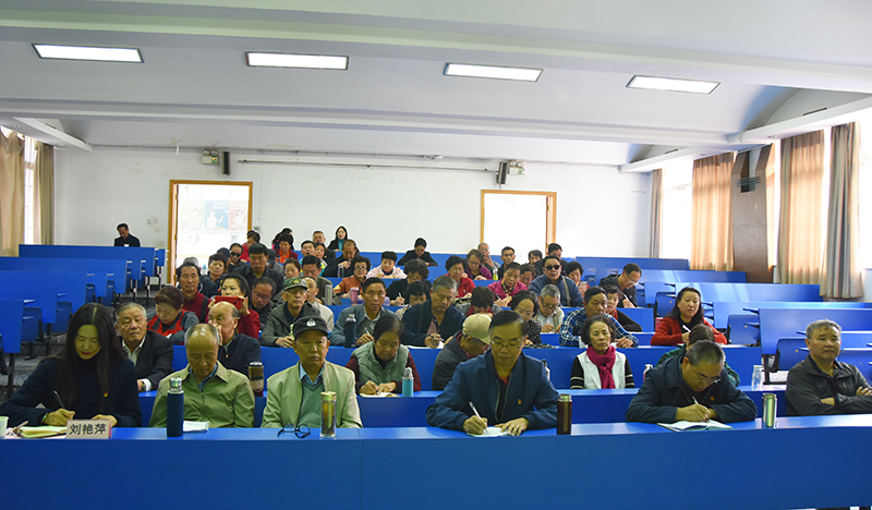 学校第五指导组成员、旅游学院党政办公室主任刘艳萍同志到会,离退休党总支委员、23个党支部委员及离退休工作处全体党员同志参加会议。