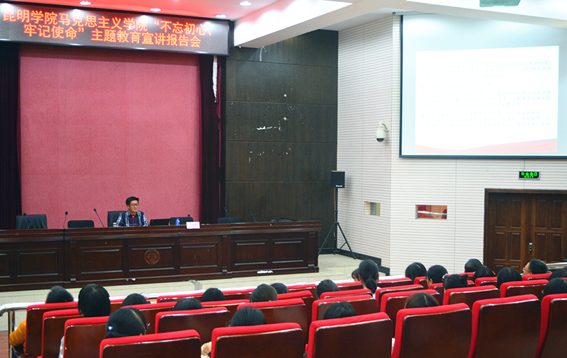 10月11日,马克思主义学院举办“不忘初心、牢记使命”主题教育宣讲报告会。邀请中共云南省委“不忘初心、牢记使命”主题教育省委宣讲团成员、云南财经大学马克思主义学院直属党支部书记李亚军副教授作“深入学习把握《习近平“不忘初心、牢记使命”论述摘编》的思想内涵和实践要求”的主题报告。报告会由直属党支部书记王宁主持,马克思主义学院全体师生聆听了宣讲报告。