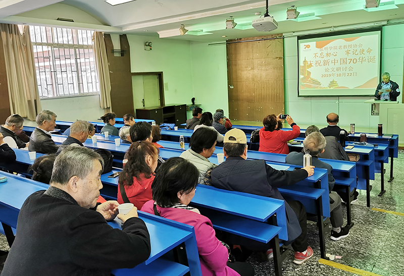 10月22日上午,德赢VWIN官方网站老教授协会在昆师路校区阶梯教室召开“不忘初心、牢记使命”庆祝新中国成立70周年学术研讨会。这是协会本年度举行的“‘不忘初心、牢记使命’庆祝新中国成立70周年”系列文化活动中的一项重要活动。会议由秘书长施长根主持,会长张云权作简要讲话。