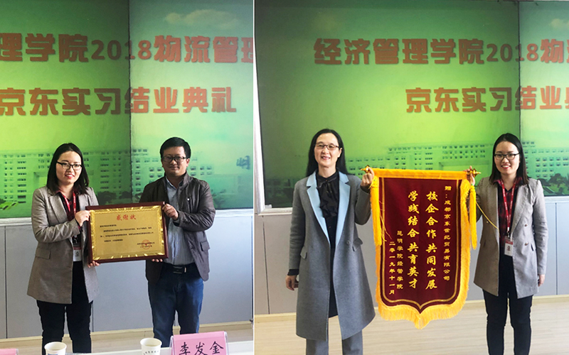 樊传章书记在结业典礼上讲话,对同学们圆满完成实习任务表示祝贺、对同学们在实习期间的优异表现给予充分的肯定和鼓励,同时表达了与京东物流进一步深化校企合作的意愿,希望通过双方共同努力,在应用型人才培养上探索新的模式并代表学院接受了京东物流的感谢状。雷新华院长为京东物流颁赠锦旗,对京东物流在学生实习过程中给予的支持和指导表示感谢。京东物流相关部门负责同志分别讲话,对实习生的表现给予充分肯定。