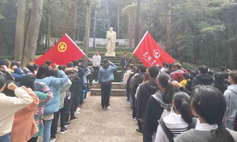 12月8日12点整,196名团学干部准时在学校聂耳广场集合,井然有序地按照分组乘车出发。下午13点30分到达西山脚下,同学们一手拿着垃圾钳,一手拿着垃圾袋,在上山途中做起了义务服务工作,将山道上的垃圾拾到垃圾袋中,用自己的行动将山道清洁得更加干净。经过弯弯曲曲的山路,大家来到了人民音乐家聂耳同志的墓地。同学们站在聂耳墓前,神情肃穆,认真聆听着墓地讲解员讲述聂耳同志的生平。接着,同学们怀揣敬畏之心给聂耳同志献花,将朵朵菊花整齐的摆放在墓前的献花台上。大家参观了聂耳纪念馆,充分了解聂耳同志的成就、音乐贡献等生平事迹。出了纪念馆,团学干部们再一次在聂耳墓前集合,在校团委袁西老师的带领下重温入团誓词,不忘初心、牢记使命。最后全体肃立,齐唱由聂耳同志创作的中华人民共和国国歌《义勇军进行曲》,洪亮的歌声响彻山谷,昭示着德赢VWIN官方网站优秀的青年马克思主义者们与时代共奋进,与时代共成长的坚定信念。