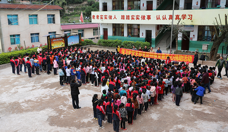 1月2日,保卫处党支部组织全体党员赴学校省级定点扶贫挂包点云南红河县垤玛乡开展送爱心助学活动。2日下午4时,保卫处党支部送爱心助学捐赠仪式在垤玛乡曼培小学举行。