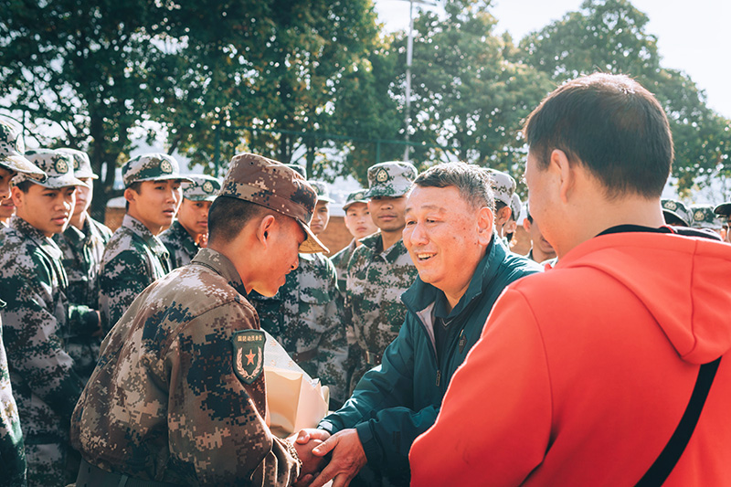 1月9日,体育学院领导班子成员、辅导员及班主任到学生军训训练场地看望体育学院全体参训学生及指导教官,为每一位同学带去新年祝福和慰问品。