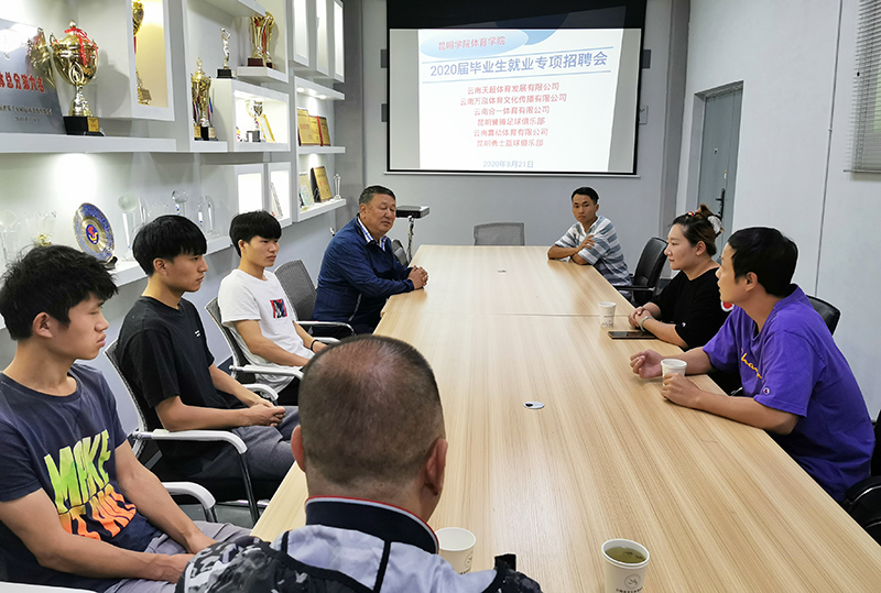 云南天超体育发展公司、云南万泓体育文化传播有限公司及昆明喜动体育文化传播有限公司积极支持此次专项招聘活动,分别拿出了管理、教学等优质岗位供同学优先选择,同时还派出专业人员进校与3位毕业生面商。
