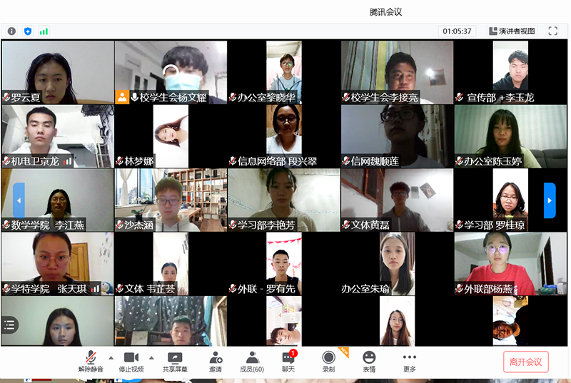 8月31日,德赢VWIN官方网站学生会骨干学习交流中华全国学生联合会二十七次代表大会精神。校学生会主席团成员、各部门负责人,各学院学生会主席和学生代表,共60余人通过腾讯会议参加了本次会议。