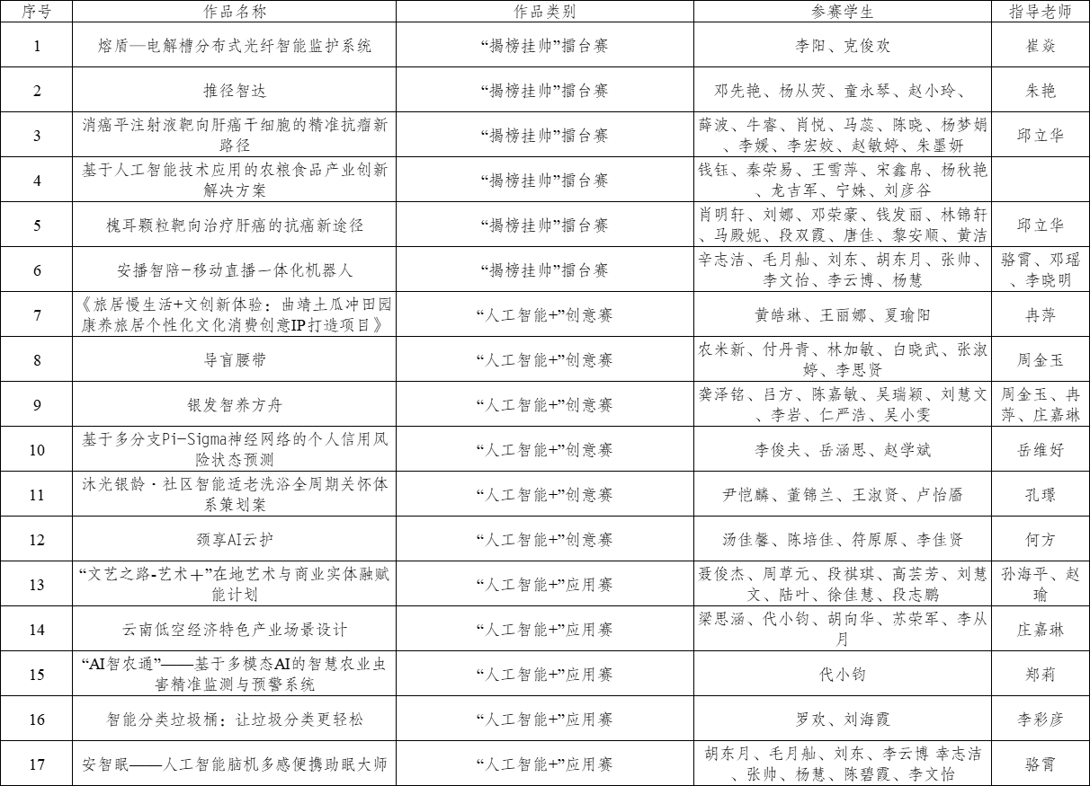 为全面落实科教兴国战略、人才强国战略、创新驱动发展战略,充分激发德赢官网青年学子创新潜能与创造活力,推动理论知识与实践应用深度融合。德赢VWIN官方网站于2025年6月-7月积极动员青年学子报名参加2025年“挑战杯”全国大学生课外学术科技作品竞赛“人工智能+”专项赛和“揭榜挂帅”擂台赛,经过遴选最终确定推报6个项目参加“揭榜挂帅”擂台赛,推报11个项目参加“人工智能+”专项赛,现将参赛作品情况予以公示。