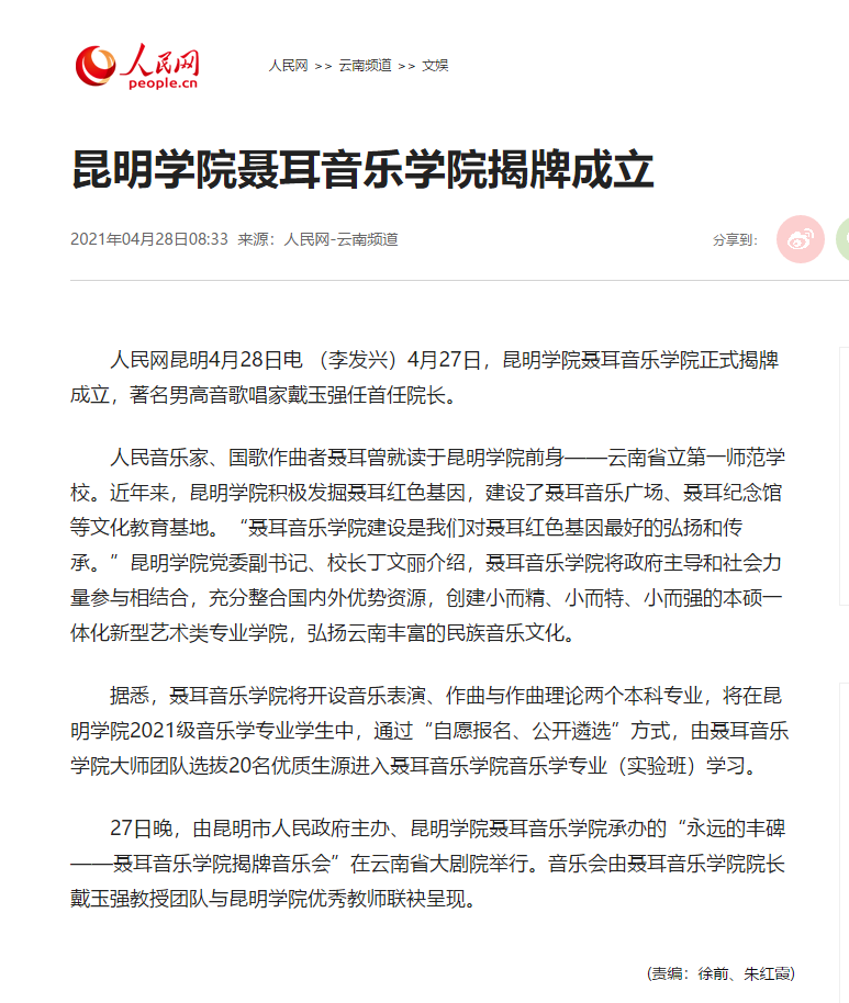德赢VWIN官方网站聂耳音乐学院揭牌成立