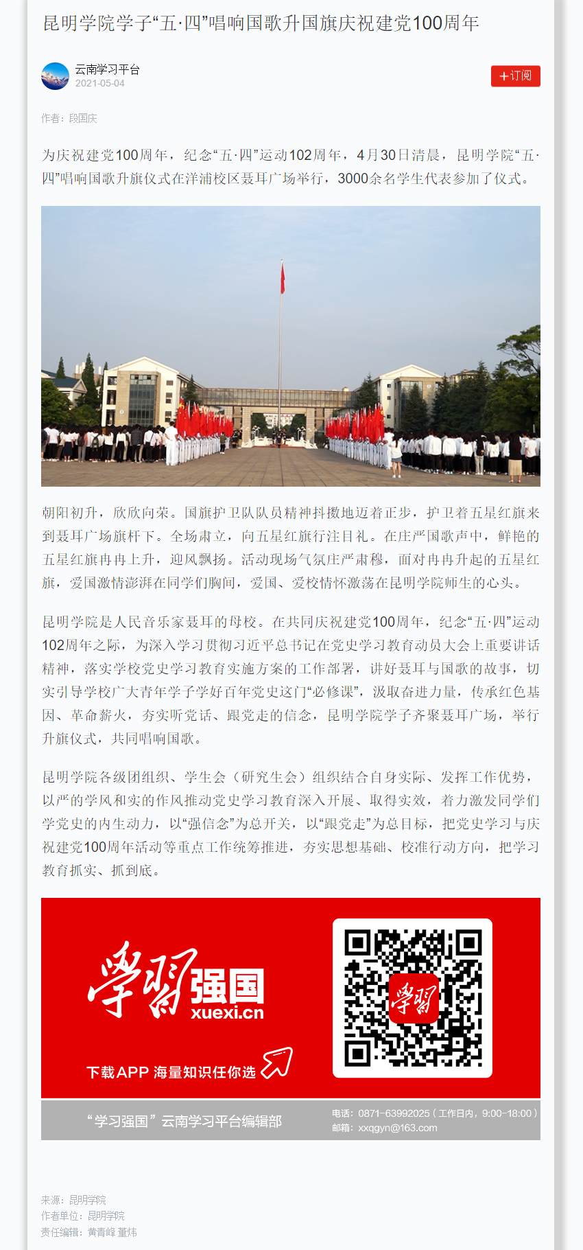 德赢VWIN官方网站学子“五·四”唱响国歌升国旗庆祝建党100周年