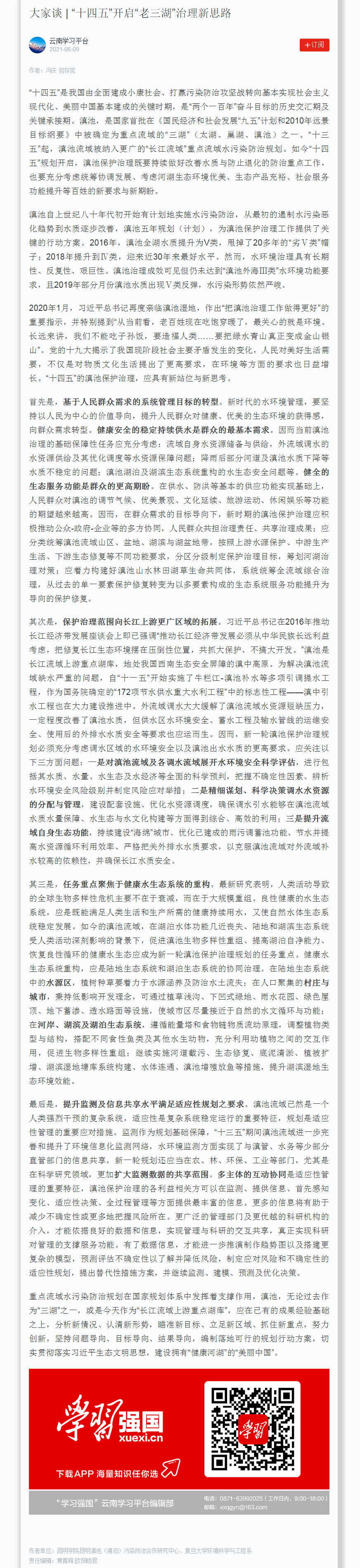 大家谈 | “十四五”开启“老三湖”治理新思路
