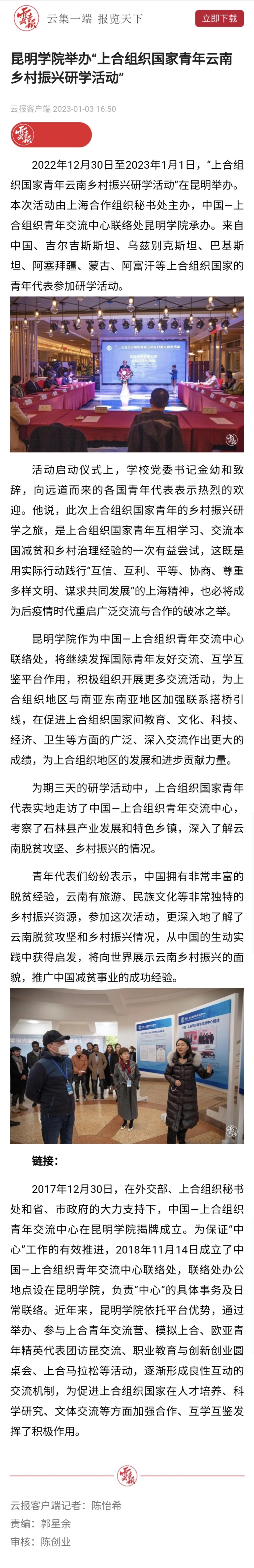 德赢VWIN官方网站举办“上合组织国家青年云南乡村振兴研学活动”