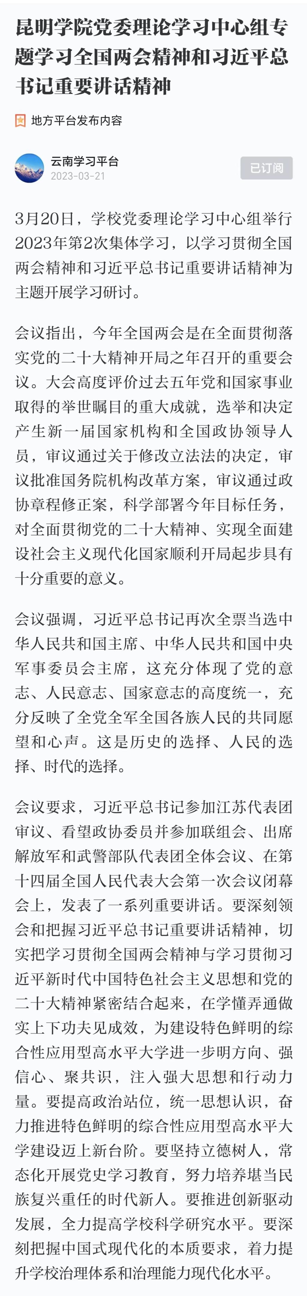 德赢VWIN官方网站党委理论学习中心组专题学习全国两会精神和习近平总书记重要讲话精神