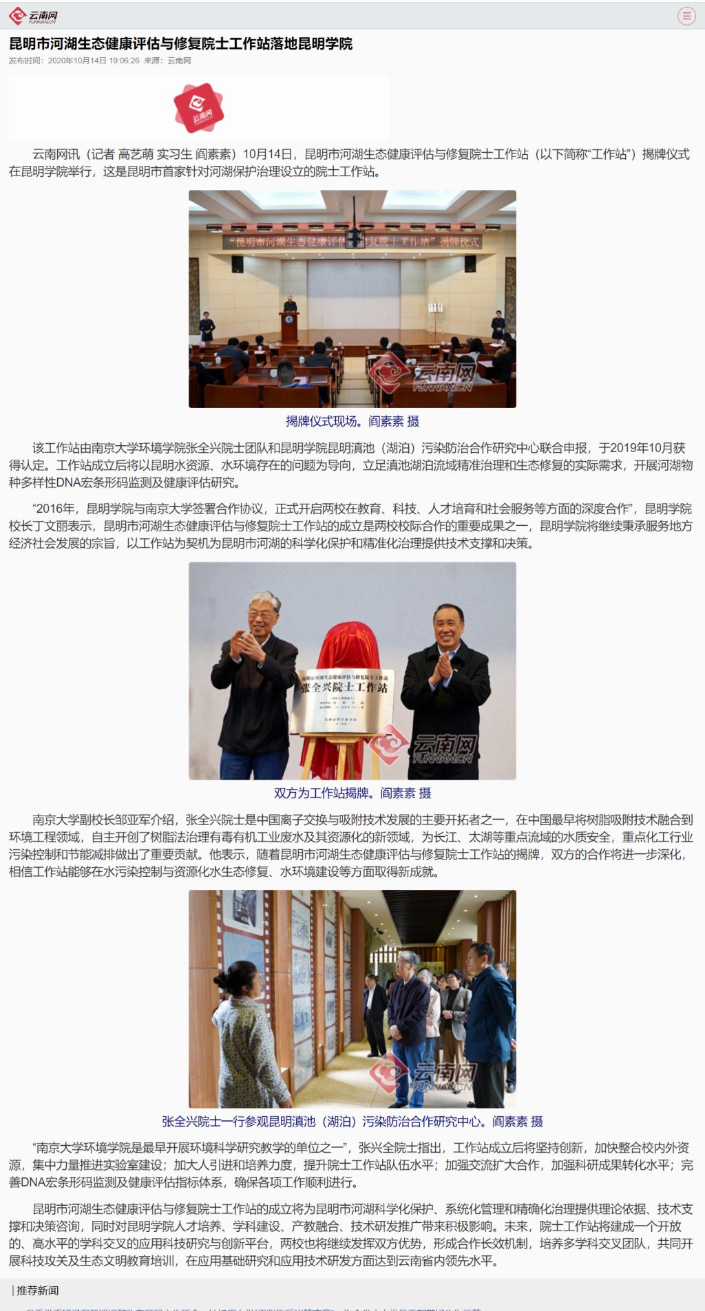 昆明市河湖生态健康评估与修复院士工作站落地德赢VWIN官方网站