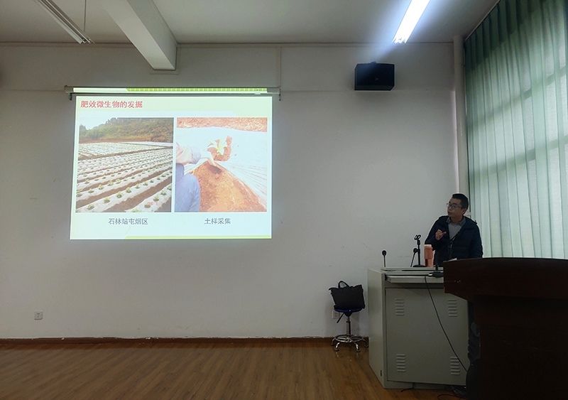 2020年12月30日,农学与生命科学学院邀请云南省农业科学院生物技术与种质资源所研究员周晓罡,在农学楼1507会议室作关于“功能微生物的发掘及其应用”的主题讲座。2019级、2020级研究生和学院部分教师参加了讲座。周晓罡研究员现任云南省农业科学院生物技术与种质资源所环境微生物中心副主任,长期致力于肥效以及拮抗微生物资源收集。