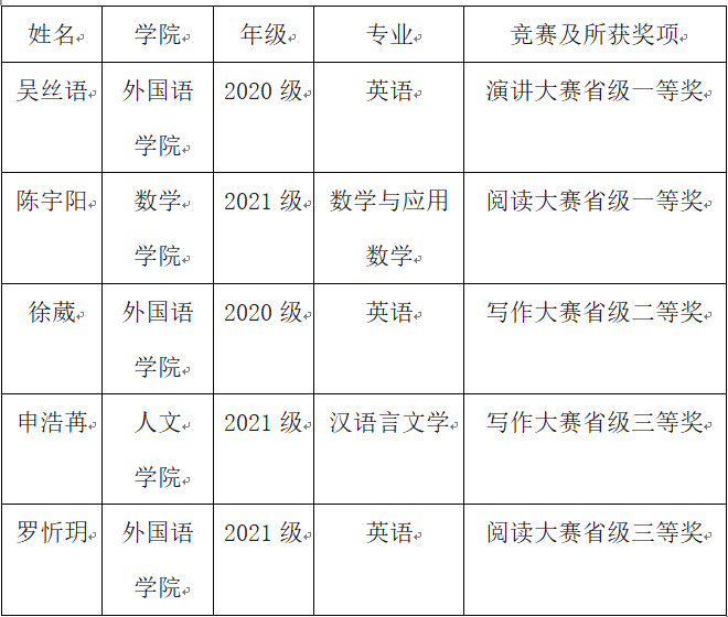 11月4日,2022年“外研社·国才杯”全国英语演讲大赛云南赛区决赛暨写作、阅读大赛颁奖典礼在昆明理工大学举行,德赢官网外国语学院2020级英语专业学生吴丝语等5位同学共获得省级一等奖2项、二等奖1项和三等奖2项。