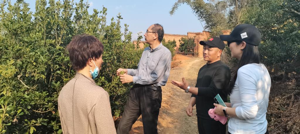 近日,为有效解决红河州石屏县杨梅小叶病频发问题,学校实训基地副教授黄敏博士与石屏杨梅专家工作站团队成员一同到石屏县杨梅小叶病发生较为严重的果园进行了实地调查。