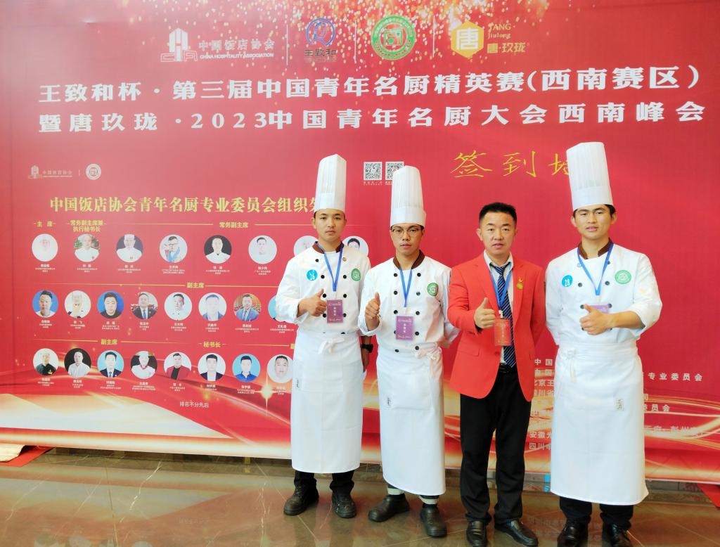 赛前旅游学院刘福灿老师精心指导2021级烹饪与营养教育专升本1班刘贵明、李钰,2022级烹饪与营养教育专升本2班郝兴福等8位同学参加赛前集训,最终选派刘贵明、李钰、郝兴福三位同学代表德赢官网参加此次厨艺大赛。经大赛比拼,刘贵明同学获学生组全场最高分,以特金奖的成绩晋级全国总决赛,李钰、郝兴福同学也取得金奖的好成绩。