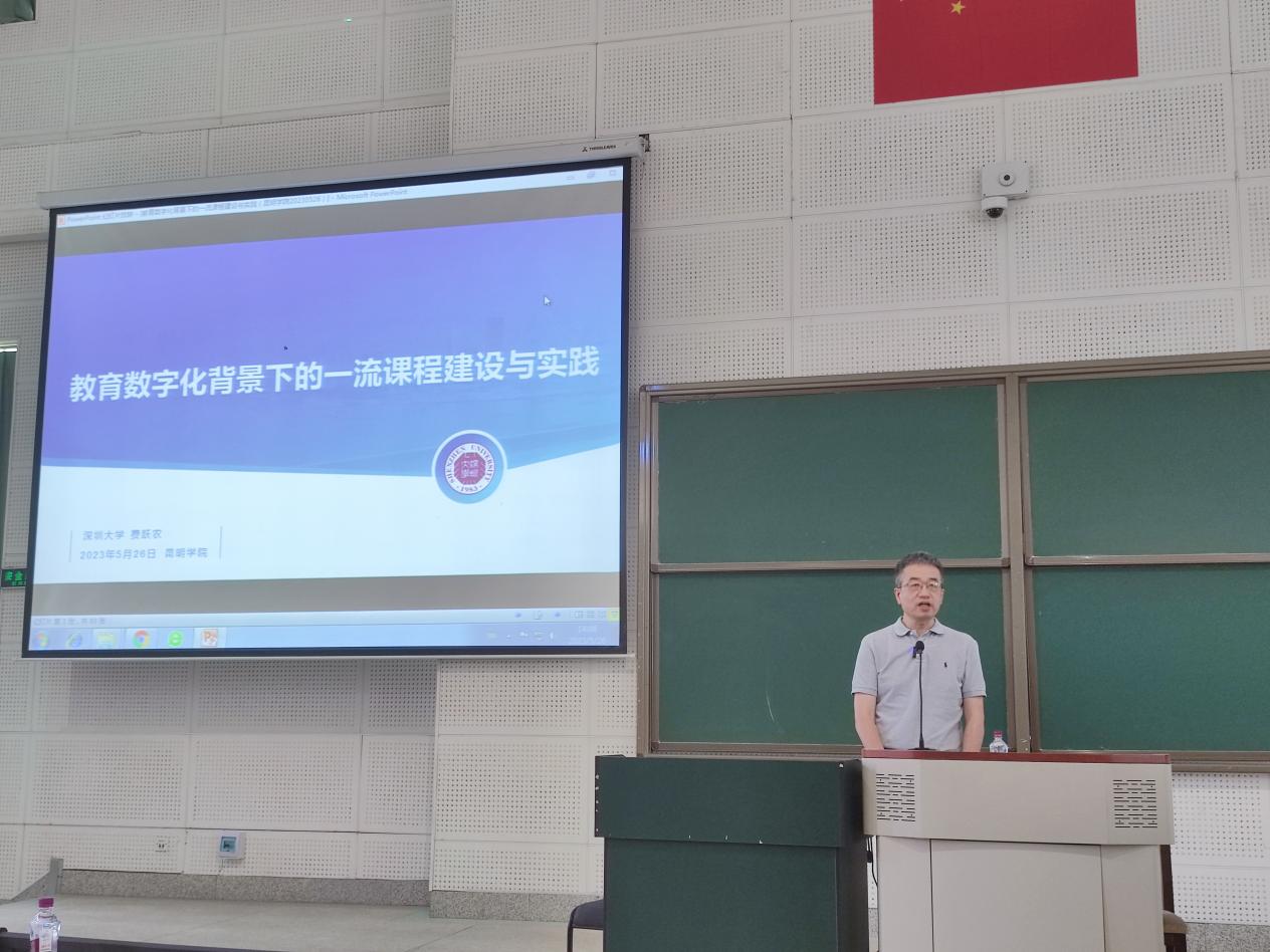为进一步提升教师教学能力,加强课程建设,为学校申报省级、国家级一流本科课程做准备,5月26日下午,学校邀请深圳大学机电与控制工程学院教授、国家级一流本科课程负责人费跃农教授作题为《教育数字化背景下的一流课程建设与实践》的专题培训。全校教师以线上线下结合的方式参加培训。