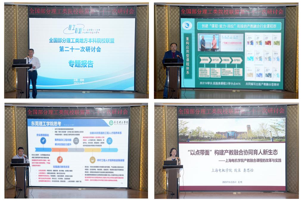 上海电机学院校长龚思怡主持第一场专题报告。常熟理工学院、南昌工程学院、成都工业学院、宁波工程学院作交流报告