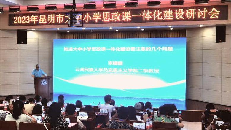 5月26日,中共昆明市委宣传部、昆明市教育体育局和德赢VWIN官方网站共同举办的“2023年昆明市大中小学思政课一体化建设研讨会”在校召开。研讨会由昆明市教育科学研究院和德赢VWIN官方网站马克思主义学院承办。