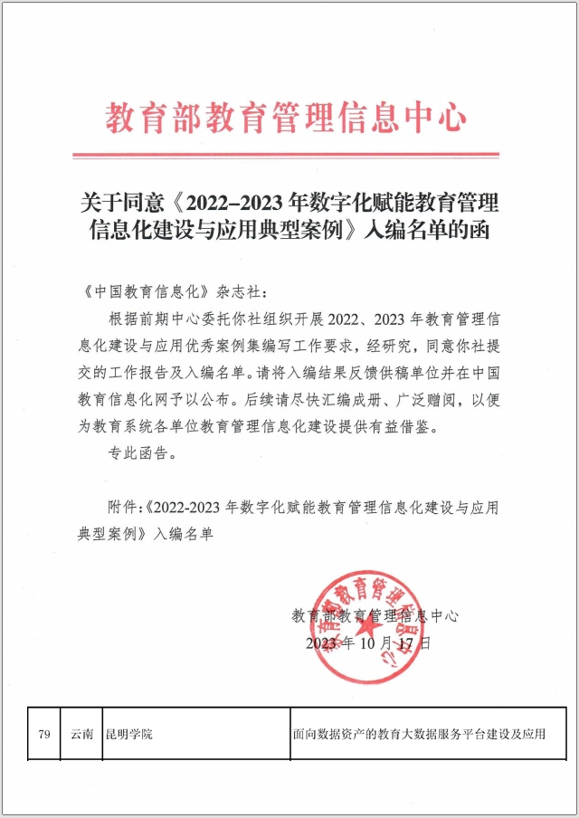 近日,教育部教育管理信息中心公布了《2022—2023年数字化赋能教育管理信息化建设与应用典型案例》入编名单,德赢VWIN官方网站申报的“面向数据资产的教育大数据服务平台建设及应用”项目入选。