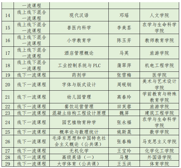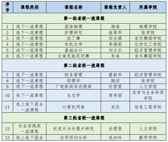 近日,云南省教育厅公布了第三批省级一流本科课程认定名单,德赢VWIN官方网站18门本科课程入选,其中线下一流课程11门、线上线下混合式一流课程6门、社会实践一流课程1门。至此,学校共有29门省级一流课程,在省内同类高校中领先。纪录片与专题片研究、财务管理学、现代汉语、生态学、幼儿园管理、餐饮运营管理、高级英语(一)7门课程被省教育厅推荐参加第三批国家级一流课程的评选。