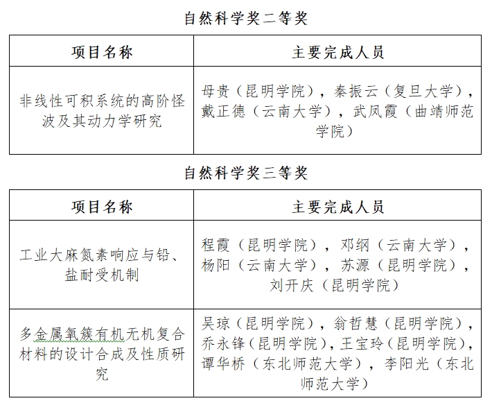 母贵教授团队的“非线性可积系统的高阶怪波及其动力学研究”获云南省自然科学奖二等奖,是德赢官网以第一完成单位在该类二等奖的突破。