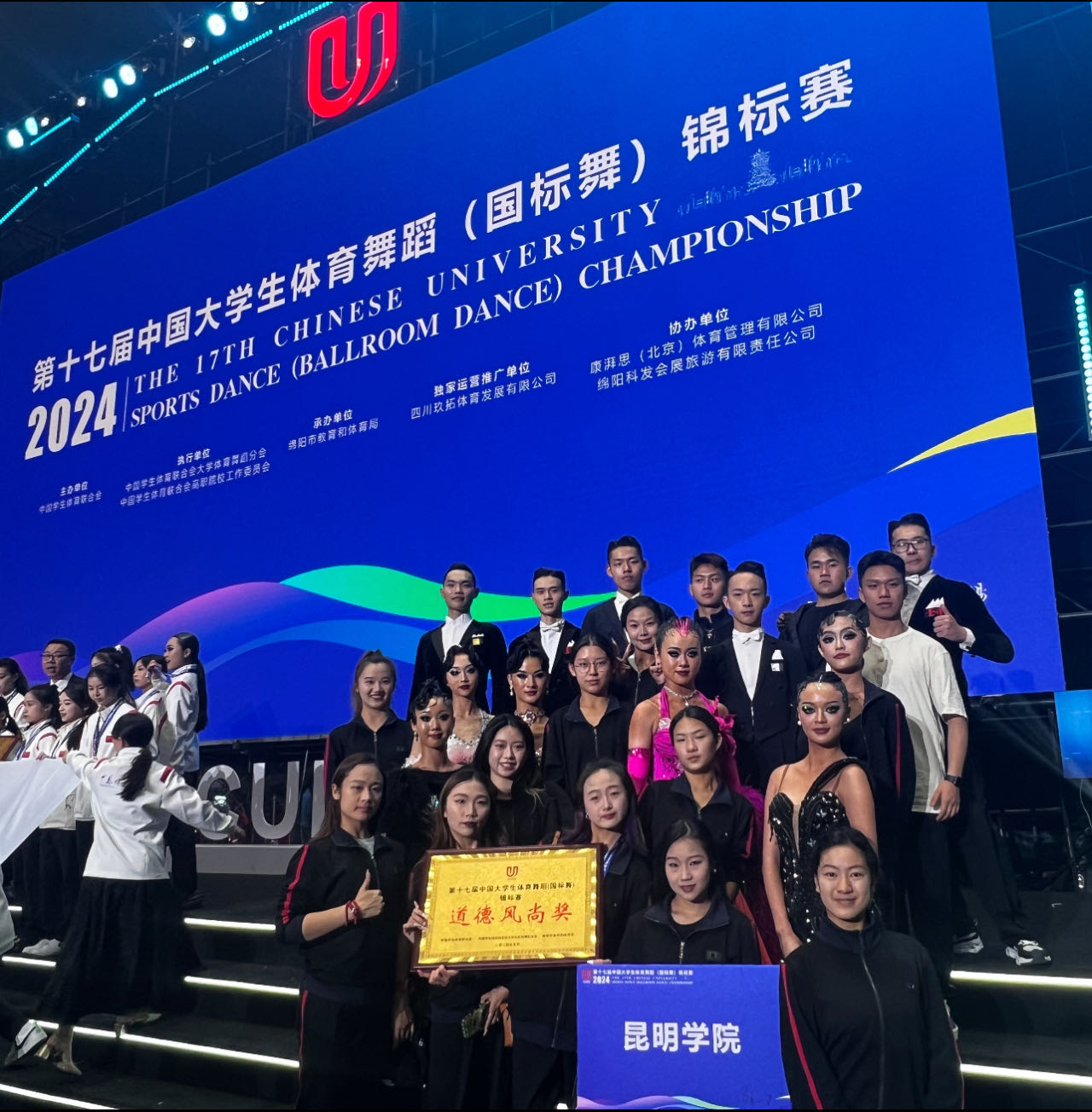 5月27日,由中国学生体育联合会主办的“第十七届中国大学生体育舞蹈(国标舞)锦标赛”在四川绵阳举行,来自全国149所高校的1600余名运动员参赛。德赢官网音乐舞蹈学院体育舞蹈专业参赛选手获得了1金、1银、1铜等9个奖项,并获团体道德风尚奖、优秀教练员奖和优秀运动员奖。