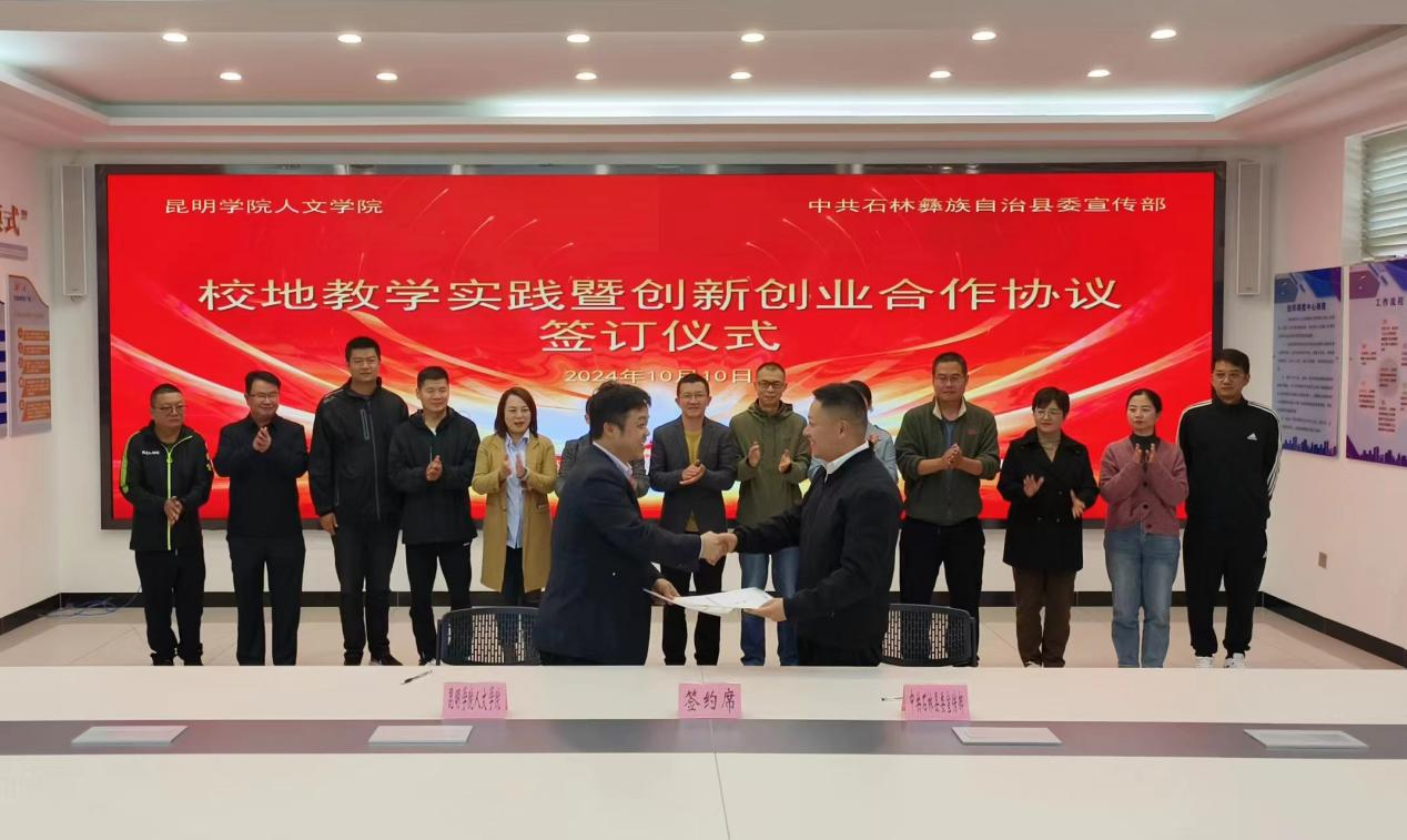 为推进院政合作共育英才,发挥优势服务地方,10月10日,德赢官网人文学院与石林县委宣传部在石林县融媒体中心签订院部合作协议,并正式挂牌“学生实践教学基地”和“大学生创新创业基地”。