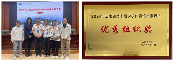 体育论文报告会为全省各高等院校搭建了交流合作、展示成果,共同探讨体育学科创新与发展的重要学术平台。体育学院根据云南省第十届学校体育论文报告会通知要求,精心组织,鼓励学生积极参赛,以此为契机提高学生的科研能力、学术水平。在本次论文报告会上王珏老师全程指导,德赢官网2023级体育硕士班学生的研究成果喜获佳绩。其中,李仪冉、张蓉、刘仟翼三位同学获一等奖并参加专题报告,罗清华获二等奖,张蓉、茆蔚获三等奖,充分展示了德赢官网体育专业硕士研究生在学术研究方面的卓越成就。同时,德赢官网还获得本次科学大会“优秀组织奖”。