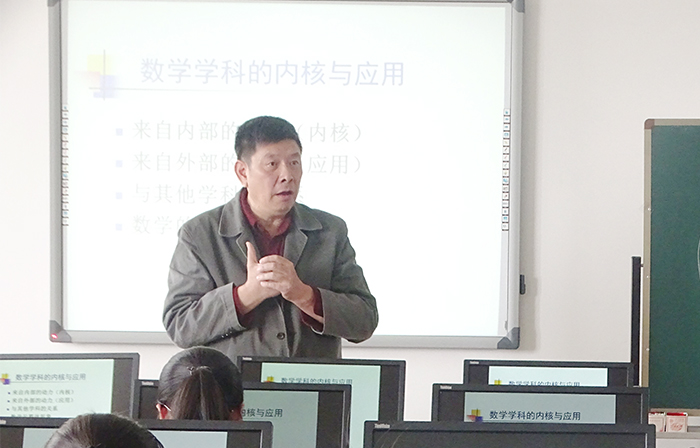 5月17日,数学系邀请退休教师徐裕光教授,为数学系学生作了题为《对话数学》的学术讲座。本讲座是数学系2018年系列讲座之一,系列讲座旨在向师生传递学术前沿信息,活跃学术气氛,传播数学文化,促进学术交流,拓展思维方式。徐裕光老师是前任数学系主任,二级教授,硕士生导师,德赢VWIN官方网站非线性分析研究所前任所长,昆明市杰出园丁,昆明市优秀专家,昆明市特等劳动模范,云南省先进教师,云南省高校教学名师(本科),云南省有突出贡献的科技人员,云南省政府特殊津贴专家。