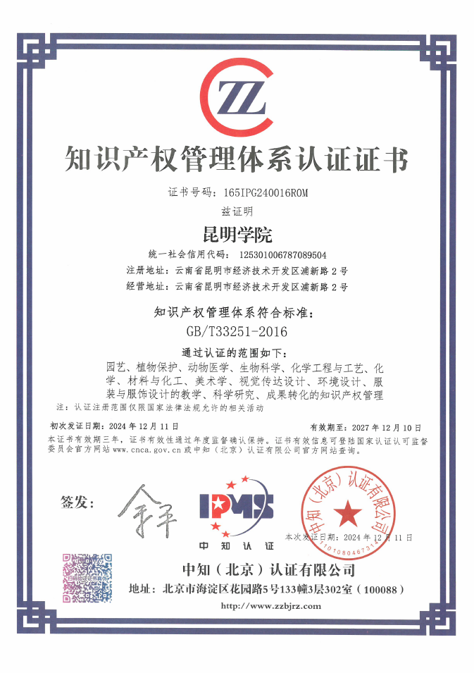 2023年底,学校获批云南省首批专利转化专项计划项目,为响应国家号召,全面提升学校的知识产权管理水平,强化知识产权保护意识,依托该专利转化项目,学校启动了知识产权“贯标”工作,在建设过程中,学校积极筹备、稳步推进,成立专门的知识产权贯标认证工作小组,精心制定工作方案,细致梳理认证体系,并认真组织内部审查。通过近一年的努力,学校成功将知识产权工作深度融入科学研究、科研管理以及成果转化的各个环节,编制了知识产权管理手册、管理制度等一系列规范性文件,逐步形成一套符合国家标准且适应德赢官网特色的知识产权制度体系和管理模式。