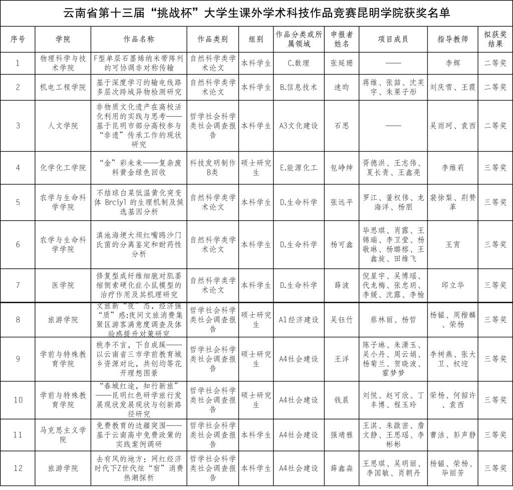 近日,云南省第十三届“挑战杯”大学生课外学术科技作品竞赛获奖名单公布,德赢官网12项作品喜获佳绩。
