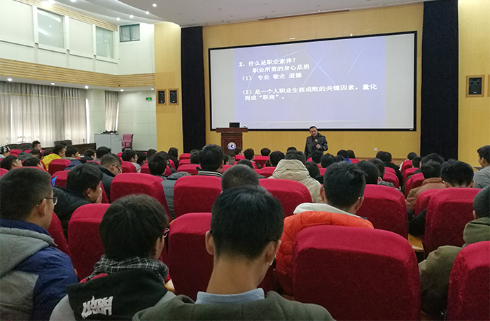 讲座伊始,赵建新教授从“走出校门后你想做什么?”、“现在你能做什么?”、“毕业后你想挣多少钱?”三个问题入手,与现场的同学进行了互动交流。赵教授以风趣幽默、严肃活波的讲座风格,为同学们讲解了云南大学生的特点、当代大学生应有的职业素养、影响大学生职业生涯的因素、对专业工作领域的认识以及大学生不良就业心态及调整等九个方面的问题,讲座以“杯子的故事”、“打开你的观念的抽屉”两个小故事作为结尾,鼓励毕业生们以良好乐观积极的心态,在有限的学校学习过程中挖掘自己的潜力,综合自己的优势,扬长避短,不懈努力,树立正确的就业择业观,以最佳状态去迎接人生的挑战。