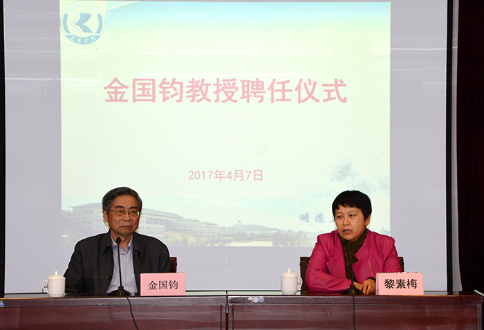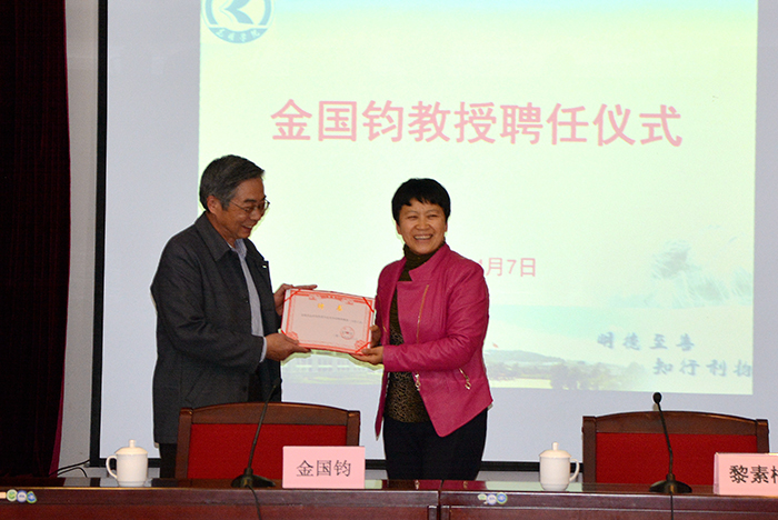 4月7日,学校举行仪式聘请金国钧教授为德赢官网特聘教授,仪式由物理科学与技术系副主任杨海教授主持,校长黎素梅向金国钧教授颁发了聘任证书。