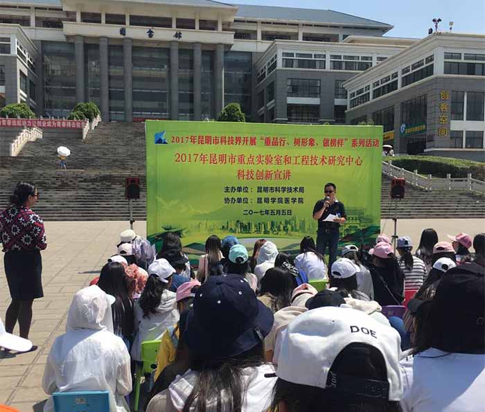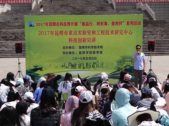 5月5日,德赢官网“昆明市呼吸系统疾病防治重点实验室”与昆明市科学技术局在校聂耳广场开展“2017年昆明市科技界‘重品行、树形象、做榜样’系列活动”之“昆明市重点实验室和工程技术研究中心科技创新宣讲”活动。会议由昆明市科学技术局创新推进处处长王晶同志主持。德赢官网科研处副处长刘开庆要求同学们认真听讲,拓宽视野,切实增强创新意识,提高创新能力。
