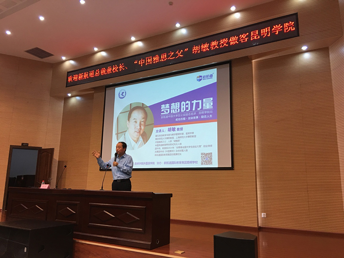 5月11 日,新航道国际教育集团总裁兼校长胡敏教授应邀到德赢官网进行了“梦想的力量”大型公益励志主题讲座。此次讲座由外国语学院主办,新航道国际教育集团(昆明新航道)承办。外国语学院各位领导、新航道国际教育集团领导及德赢官网部分师生参加了本次讲座。