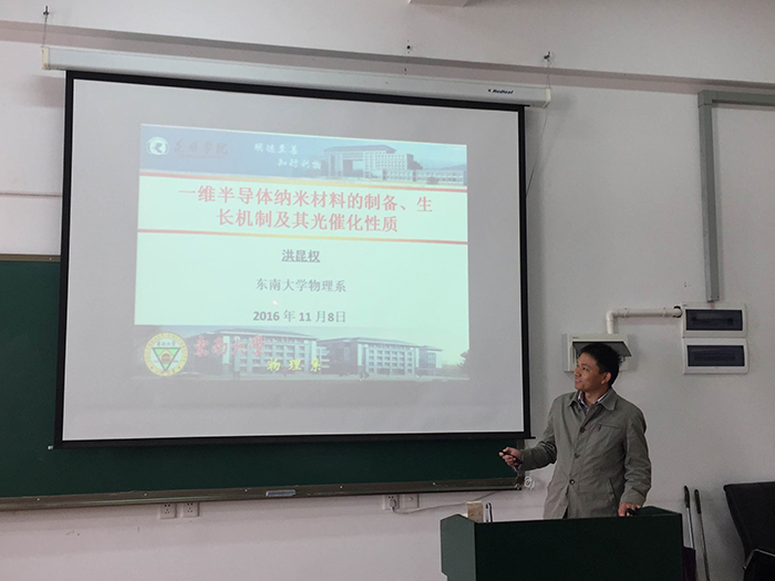 11月8日,由德赢VWIN官方网站科研处主办,云南省高校有机光电子材料与器件重点实验室承办,邀请东南大学洪昆权副教授来德赢官网做题为 “一维纳米结构的制备、生长机制及其光催化性质” 的学术报告,报告由王海教授主持。
