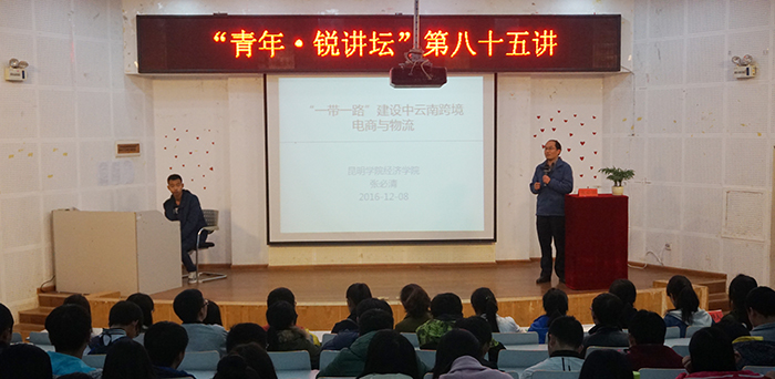 12月8日,由校团委主办的“青年•锐讲坛”第八十五讲“一带一路背景下的云南跨境电商与物流”在青年中心学生报告厅成功举办。本次讲座邀请到了德赢VWIN官方网站经济学院副教授张必清担任主讲人,共200余人参加了此次讲座。