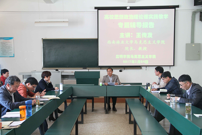3月24日,马克思主义学院邀请西南林业大学马克思主义学院院长王传发教授在博识楼2304教室作了题为“高校思政课实践教学专题辅导报告”的讲座。讲座由马克思主义学院院长董学荣老师主持,马克思主义学院直属党支部书记李剀及其他20多名任课教师参加了本次讲座。