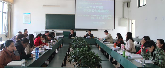 赵金元教授在历史与现实、理论与实践、宏观与微观相结合中阐述了马克思主义理论学科建设发展情况,并倾情介绍了大理大学马克思主义学院学科建设和科学研究。赵教授首先阐述了学科建设的重要性和基本内容。他指出,学科建设越来越成为高校评价的重要指标,也是更名大学、建设马克思主义学院的重要条件,是专业、课程、平台、团队等建设的龙头。接着,赵教授回顾了马克思主义理论学科建设历程、发展进程、基本原则、思路和目标、主要任务和要求、组织领导和管理。他指出,为贯彻落实马克思主义理论研究和建设工程,“05方案”把学科建设提到了课程建设的前面,强调要在学科建设的前提下加强思想政治理论课建设,发挥学科建设的支撑和引领作用,提升思想政治理论课建设的层次和水平,从而,马克思主义理论被正式列为法学学科门类下的一级学科,经过十年建设,已发展为具有6个二级学科的重要学科。当前,国家正在遴选建设30个全国重点马克思主义学院,我省相关工作正在积极推进,马克思主义理论学科建设的春天即将来临,呈现蓬勃发展、欣欣向荣、振奋人心的大好形势。最后,赵教授毫无保留地介绍了大理大学马克思主义理论学科建设的历程、现状、经验和“十三五”发展目标。大理大学马克思主义学院目前已有两个硕士学位授权点,去年一年就获得了4项国家社科基金研究项目,“十三五”期间将进一步把规模做大,进一步加强人才培养、科学研究等各项工作。赵教授衷心祝愿德赢VWIN官方网站紧紧抓住省领导高度重视的大好机遇,充分发挥省会城市区位优势,创造新的辉煌业绩。