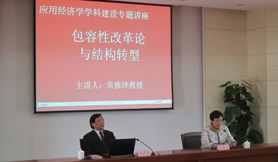 11月17日下午,在行政楼3楼报告厅,根据应用经济学科建设的需要,特邀著名经济学家常修泽教授以“包容性改革论与结构转型”为题为德赢官网师生作专题讲座。德赢官网校长蒋永文、副校长熊晶及云南省相关科研院所专家学者和同学参加了讲座。讲座由副校长熊晶主持。
