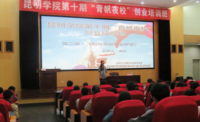 4月8日晚,由共青团德赢VWIN官方网站委员会主办,团委社会实践部承办的德赢VWIN官方网站“青帆夜校”大学生创业培训班第五十五讲(即第十期第二讲)在惟行楼1501成功开讲。此次讲座的内容为《如何实现创业梦想》。讲座邀请到了麻袋公益CEO,云南省青联委员,实战型企业家葛虹女士主讲。